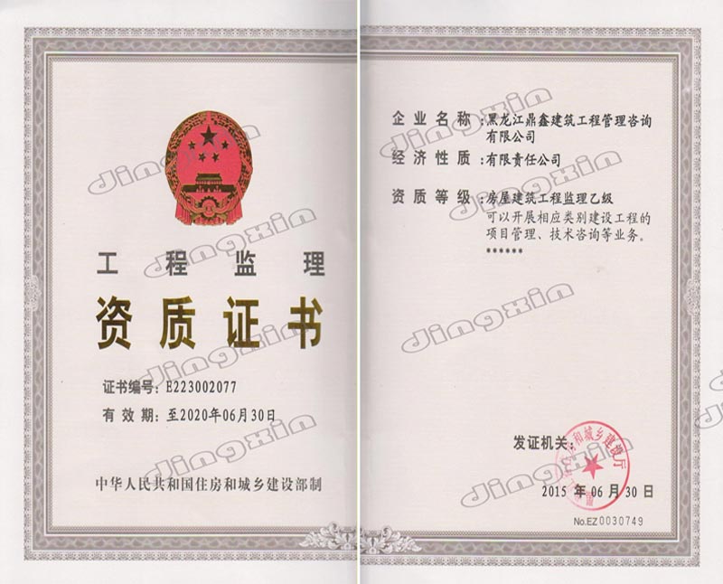 黑龍江鼎鑫建筑工程管理咨詢有限公司成立于2005年,注冊(cè)資金400萬(wàn)元。具備中華人民共和國(guó)住房和城鄉(xiāng)建設(shè)部批準(zhǔn)的工程招標(biāo)代理機(jī)構(gòu)資格、中華人民共和國(guó)財(cái)政部批準(zhǔn)的政府采購(gòu)招標(biāo)代理機(jī)構(gòu)資格、黑龍江省商務(wù)廳批準(zhǔn)的機(jī)電產(chǎn)品國(guó)際招標(biāo)代理機(jī)構(gòu)資格、中華人民共和國(guó)住房和城鄉(xiāng)建設(shè)部批準(zhǔn)的工程造價(jià)咨詢甲級(jí)資質(zhì)、黑龍江省住房和城鄉(xiāng)建設(shè)廳批準(zhǔn)的房屋建筑工程監(jiān)理乙級(jí)(市政公用工程監(jiān)理乙級(jí)資質(zhì))。主要從事建設(shè)工程及政府采購(gòu)招標(biāo)、造價(jià)咨詢、工程監(jiān)理、項(xiàng)目管理等業(yè)務(wù)。